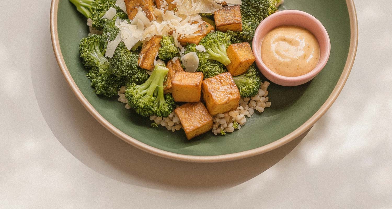 Crispy Tofu with Broccoli and Rice